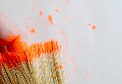 Next, dip paintbrush into paint and begin flicking the brush at the scrap piece of paper. Experiment with different brushes, distances and angles. Once you feel comfortable with the technique, it’s time to paint your umbrella.